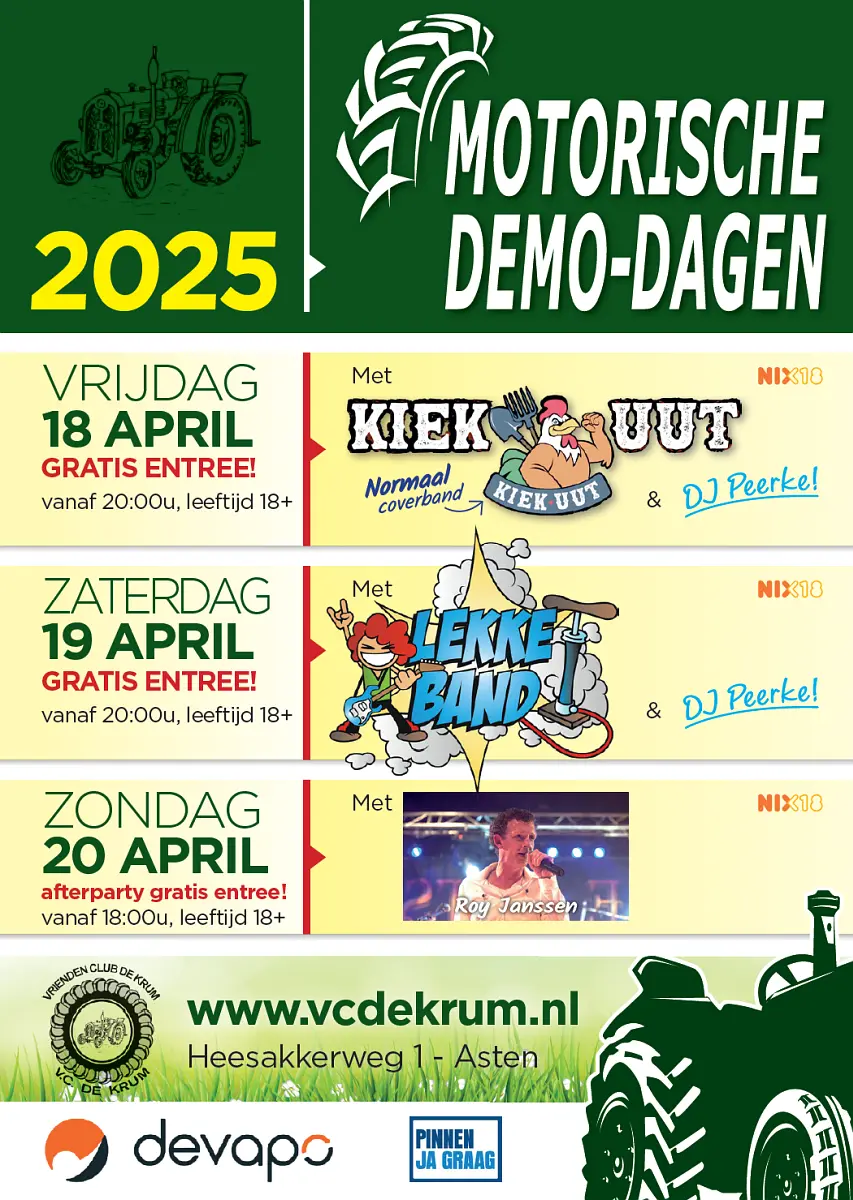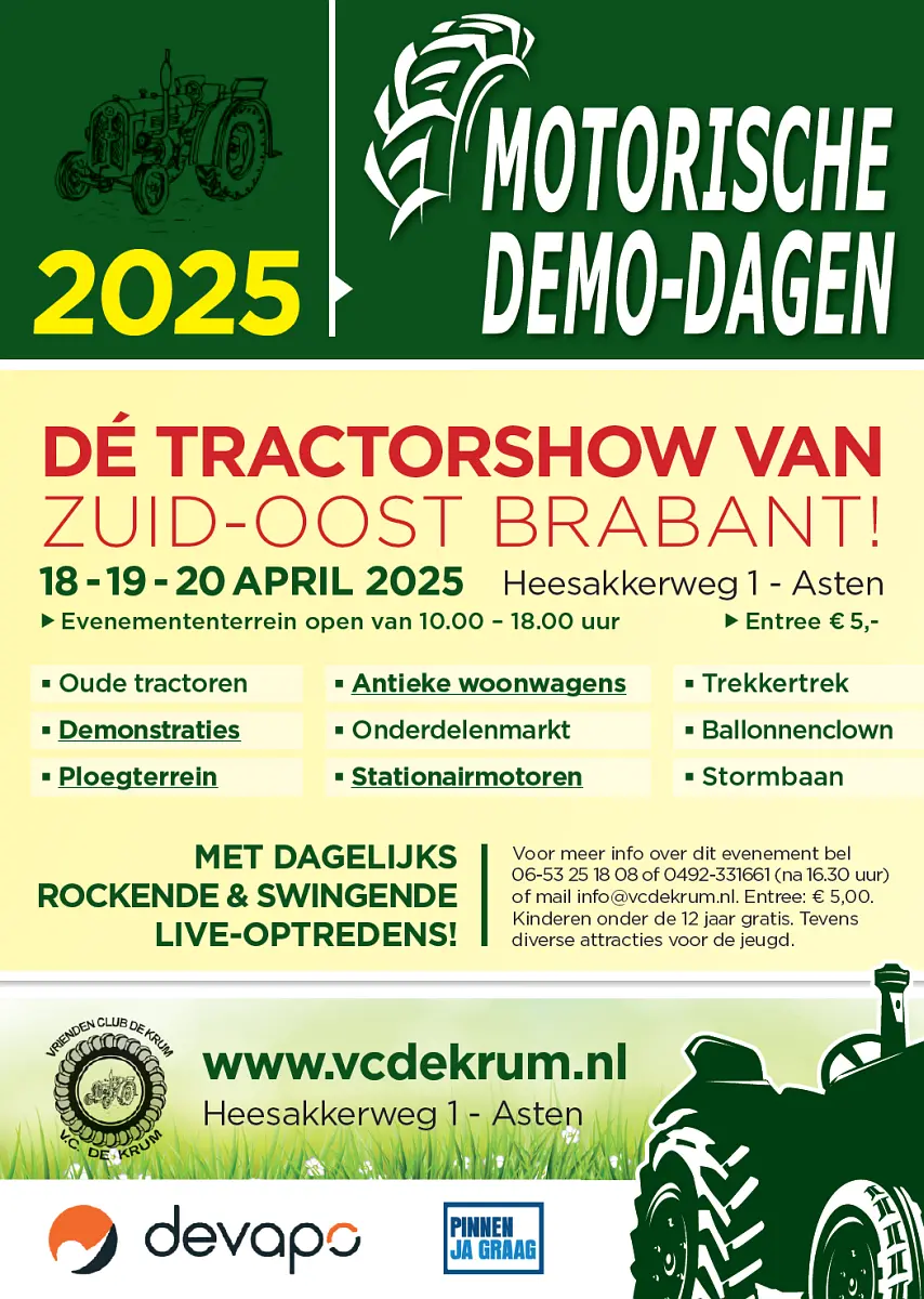 Op deze site vind u alle informatie over de Motorische Demo-Dagen welke georganiseerd worden op 17, 18 en 19 april 2026 aan de Heesakkerweg te Asten.