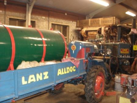 Tijdens de Demo-Dagen zal Jan Renders met Lanz Bulldog Club Zeelst de tarwe volgens traditie komen dorsen. Op de foto's staat de Stoommachine en Jan's nieuwste aanwinst; een apparaat om machinaal klompen te maken. John, Stefan en Peter waren bij hem op bezoek in Veldhoven-Zeelst.