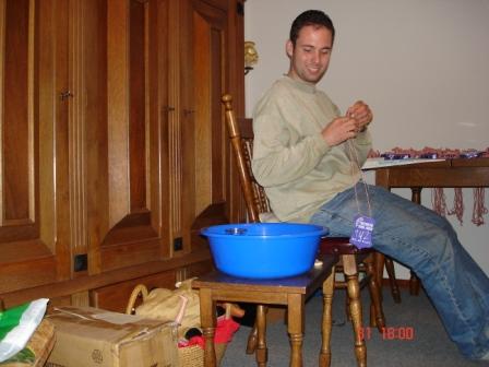 John, Stefan, Peter en Tibo tijdens het lintzaag slijpen bij Martin v.d. Moosdijk in Escharen (gem. Grave).
