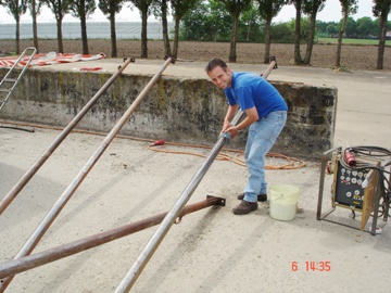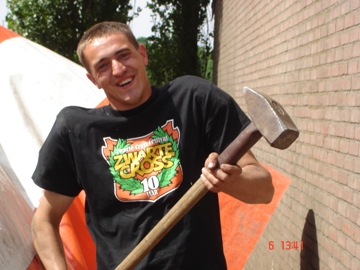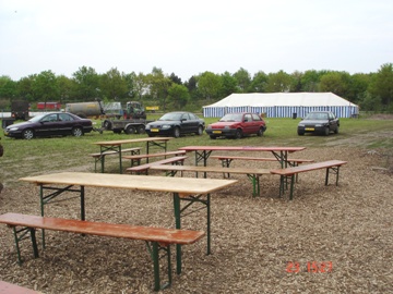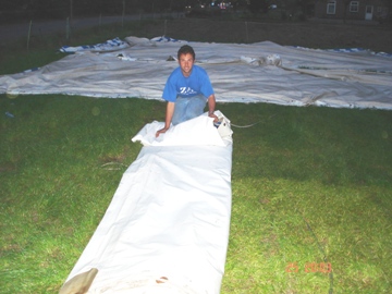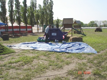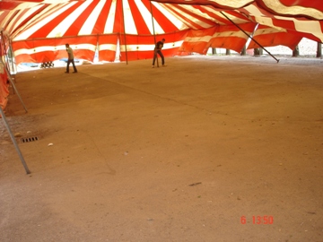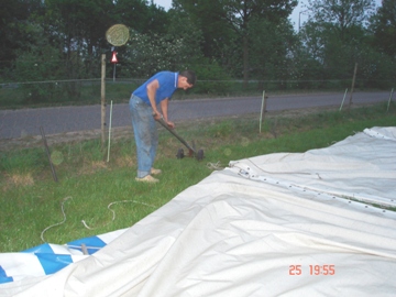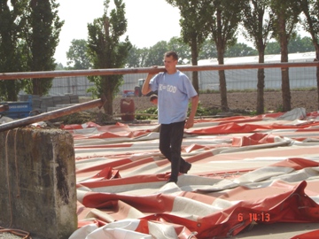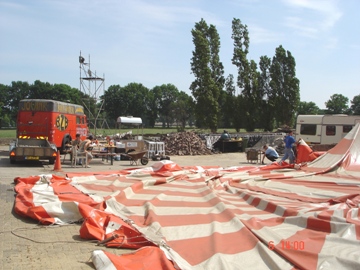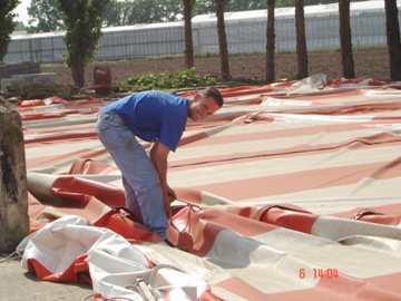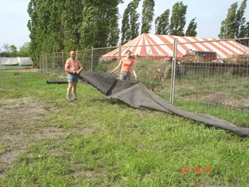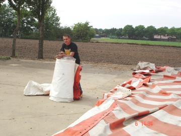 De feesttent opgeruimd. Met zwaar