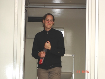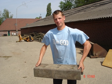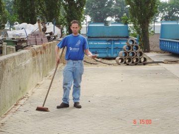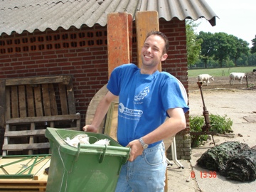 geschud versleept Martin de containers op hun plaatsen.