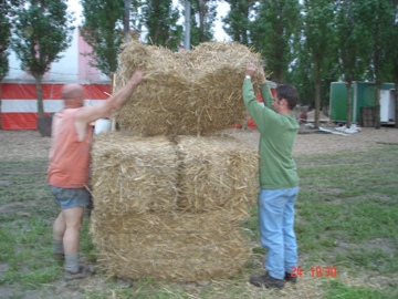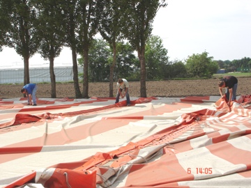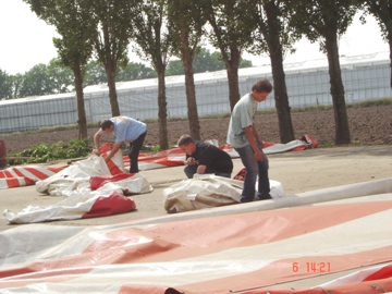 De harde werkers in actie om de feesttent op te