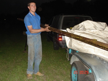 Terwijl Martin de boomstammen versleept