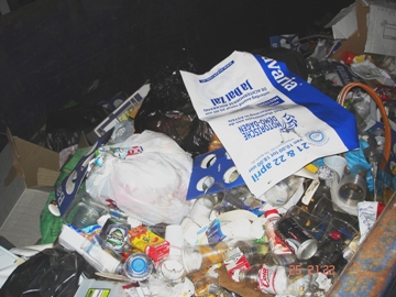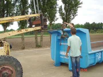 Het laatste afval naar de container.