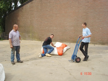 Heel wat materiaal bijeengebracht om het terrein