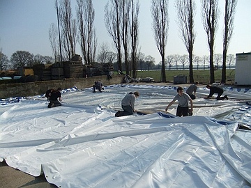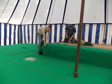 27-03-2011 Na de grote schoonmaak kan eindelijk de bouw van een der belangrijkste bouwsels beginnen; namelijk de "Feesttent".