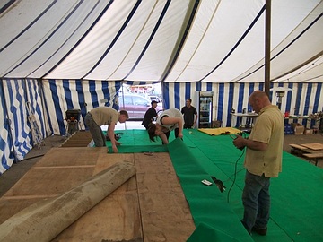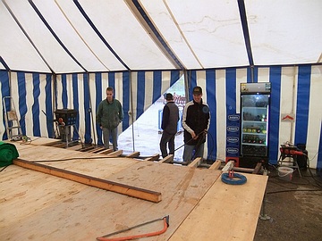 27-03-2011 De andere ploeg gaat verder met de bouw van de feesttent.