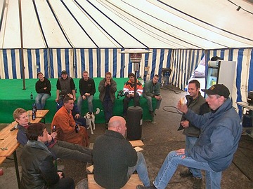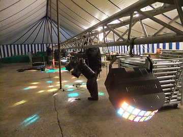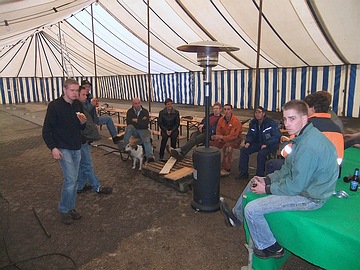 13-04-2011 De mannen in de weer met de sfeerverlichting in de tent.