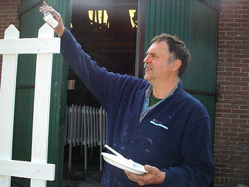 08-04-2011 Onze huisschilder Ome Henny zorgt voor een mooi pronkende afzetting.