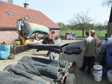 27-03-2011 Met goed gevulde magen vervolgd de ene ploeg de werkzaamheden met de afzetting.