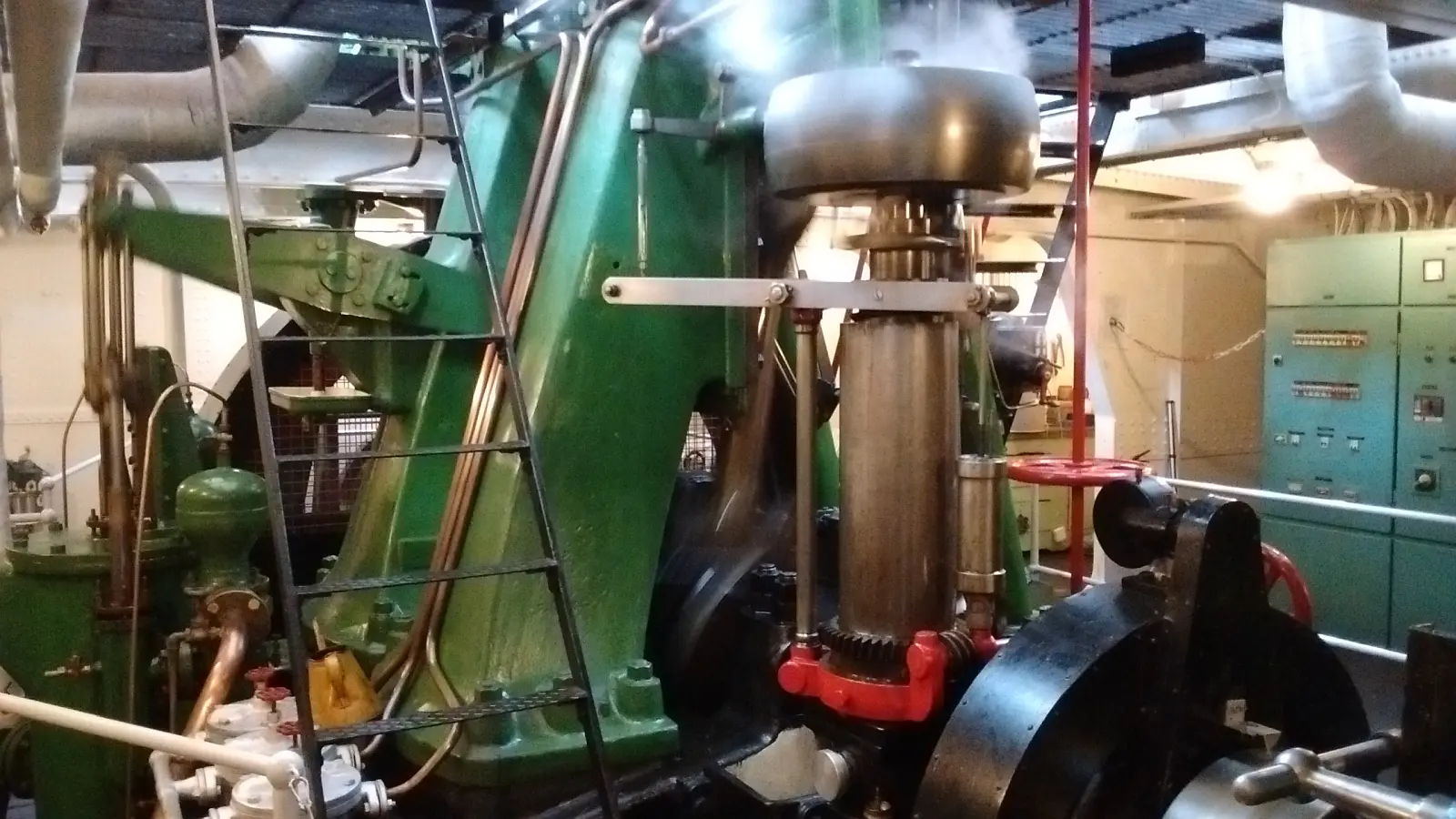 De machinekamer van de Stoomsleper Pieter Boele uit 1893 tijdens Dordt in Stoom in actie. Tijdens de activiteiten vaarde de ruim dertig meter lange sleepboot door de oude maas. Wij stonden op de boot beneden in de machineruimtes en maakte onderstaande opnames.