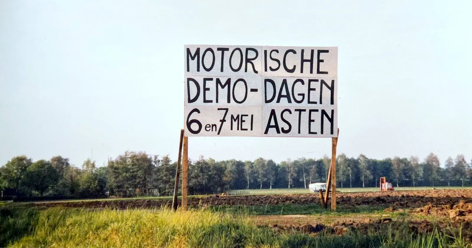 Foto: Reclamebord Motorische Demo-Dagen 6 en 7 mei 2000.